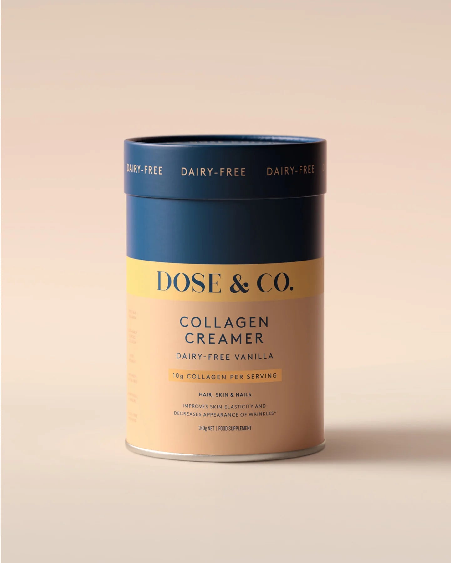 Nourish your body from the inside out with our delicious Vanilla flavoured Dairy-Free Collagen Peptide Creamer—especially shown to help improve skin tone, elasticity and firmness, decrease the appearance of wrinkles and improve the appearance of nails.* Powered by premium VERISOL® hydrolyzed collagen, this supportive, glow-boosting formula targets fine lines and wrinkles, dull and uneven skin, and other signs of ageing.