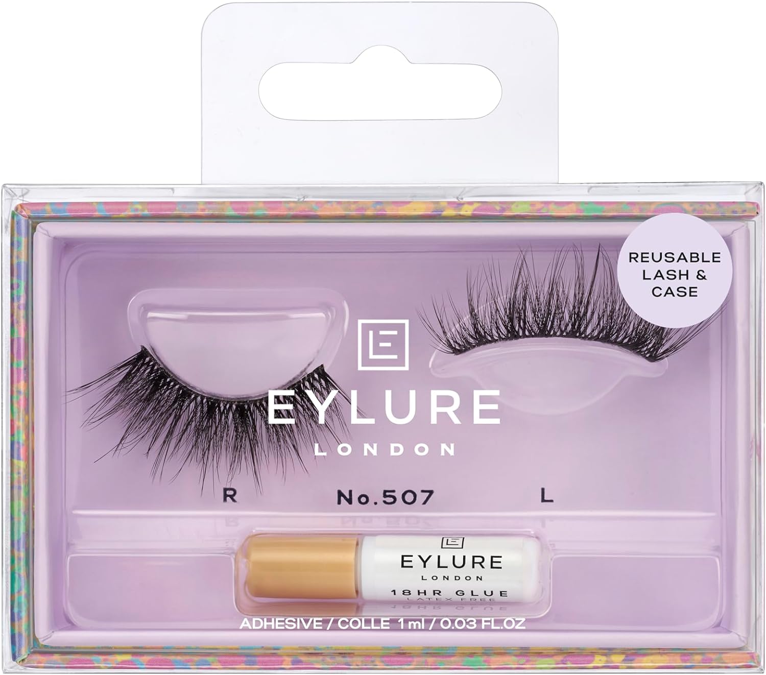 Introducing Eylure’s new lash & case combo- Keep Your Lashes Safe in Style! No.507 is a segmented lash with a delicately messed up finish. Perfect for that wildly wispy lash look. Comfort is key, and our lashes deliver just that with a thin, flexible band. Handmade and reusable for up to 10 wears, every lash pack also comes with our latex free lash glue that is guaranteed to last up to 18 hours. Our innovative lash tray takes the guesswork out of choosing the perfect lash style. With a design that showcases exactly how the lash will look on your eye, you can confidently select the ideal style to complement your look. Keep your lashes safe and secure between wears in this stylish and practical case, ensuring they stay in perfect condition for every use.