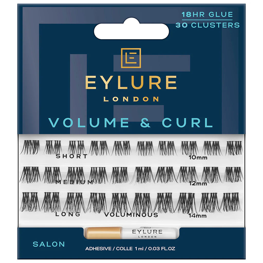 Create a salon-quality customisable lash look with Eylure Volume & Curl Cluster Lashes in style Voluminous. Eylure Voluminous Volume & Curl Cluster Lashes boast a full-bodied design of layered lash fibres, creating volume and length with a salon curl. Voluminous Cluster Lashes by Eylure are easy to apply and feature an ultra thin lash band for an undetectable finish.
