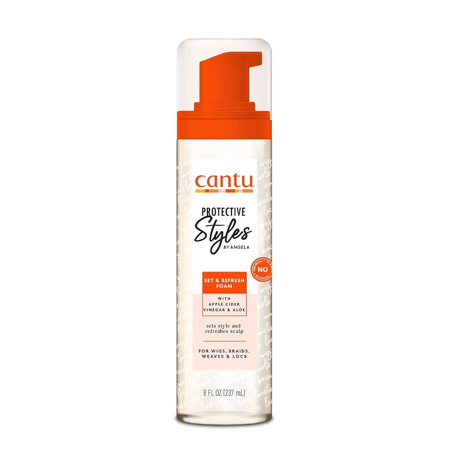 Rejuvenating your braided styles, wigs, and locs has never been easier with Cantu Protective Styles by Angela Set & Refresh Foam with Apple Cider Vinegar & Aloe. We created a foamy formula filled with nutrient-dense ingredients such as apple cider vinegar and aloe to nourish both scalp and strands. Apple cider vinegar reduces flaking and dryness for a soothed and healthy scalp. Use this formula to smooth your edges, set your braided styles and wigs, and bring new life to your curly hair extensions. It’s the perfect way to refresh your look and keep your hair healthy. We co-formulated this set & refresh foam with expert hair stylist Angela Stevens to fit your hair care goals so you can take care of your wigs, braids, weaves, and locs the way you deserve to. We crafted this protective styles formula without harsh ingredients such as sulfates and phthalates. At Cantu, we’re dedicated to giving you the Care for Long-Lasting Wear that you deserve.