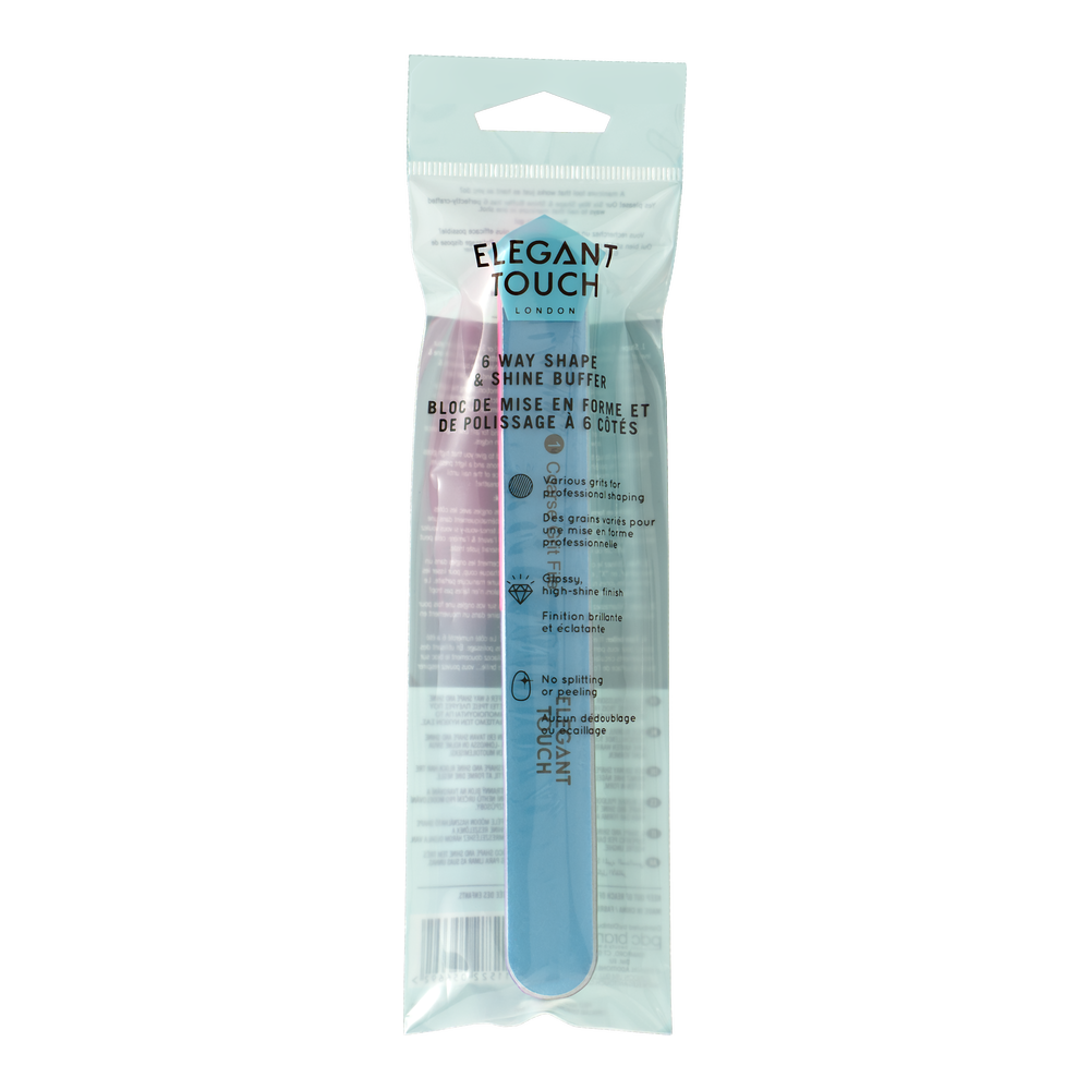 Keep your nails looking their very best with the Elegant Touch 6 Way Shape and Shine Buffer. Anytime you need a quick touch up, this buffer will become your go-to tool! The various grits on this buffer give you a range of ways to keep your nails shiny, in shape, and smooth whenever you need. Small enough to keep in your handbag, make-up bag, or even just to keep at the office, this little buffer will really make all the difference to your nails.