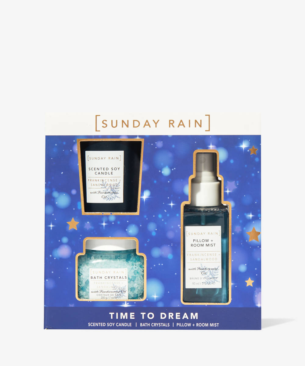 Pillow & Room Mist (90ml): Spritz this relaxing mist on your pillow or around your room to help you drift off into a peaceful sleep, surrounded by the comforting scents of frankincense and sandalwood.